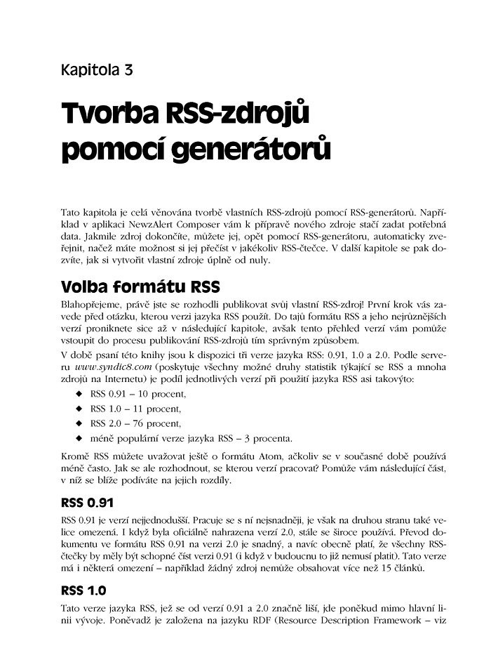 Zkušený a ve světě uznávaný autor vám poskytne také rady, jak správně psát a tvořit své vlastní zdroje RSS. S knihou tak budou i začátečníci nyní schopni vylepšit své webové stránky o moderní technologii a zařadit se po bok profesionálů.