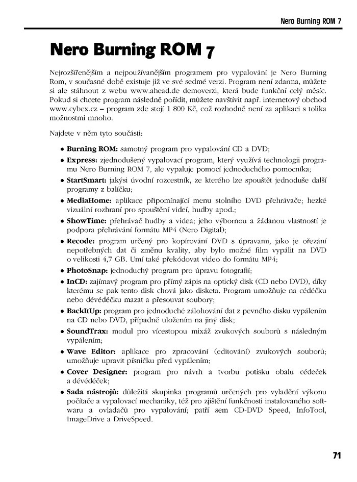 Na přiloženém CD najdete užitečné utility, aplikace a programy pro vypalování DVD, například Nero Burning Rom, Alcohol 120%, DVD Shrink, WinDVD Creator, DVD Decrypter, Audio DVD Creator, DVDx, Vidomi a další.