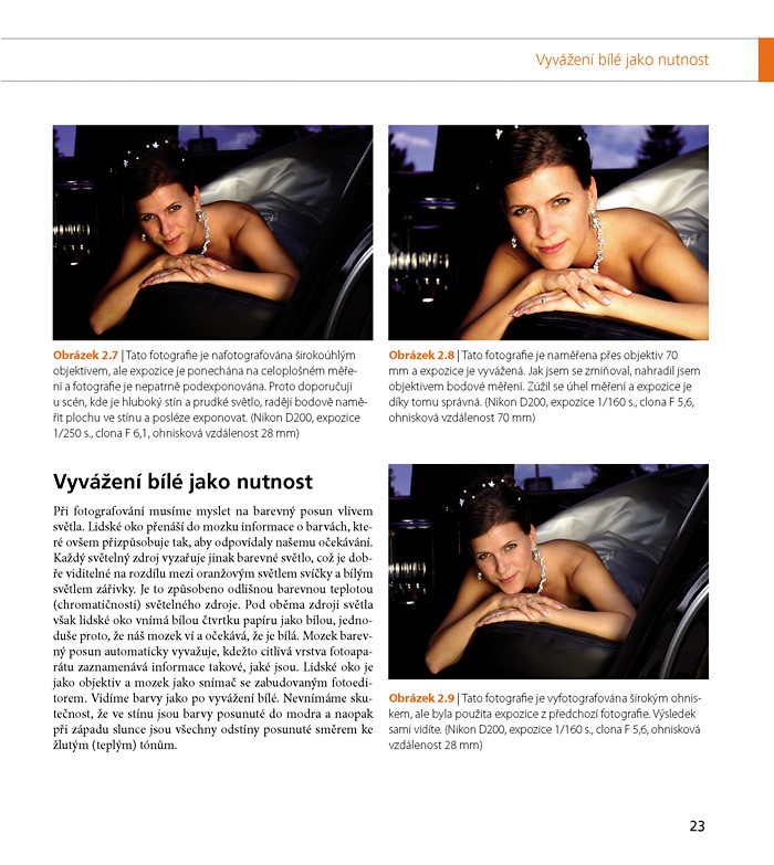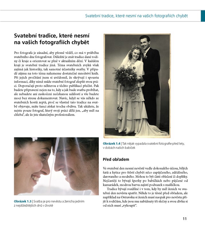 Svatební fotografie je specifická hned v několika směrech. Je nutné přesně a dokonale zachytit okamžiky, které se už nikdy nebudou opakovat, musíte se potýkat se složitými, často se měnícími světelnými podmínkami, zvládnout kontrast mezi černým oblekem ženicha a bílými šaty nevěsty a myslet přitom i na to, aby každý zúčastněný vypadal na výsledném snímku co nejlépe. S touto knihou však budete na všechny tyto situace dobře připraveni a výsledné fotografie pak budou dokonalé.