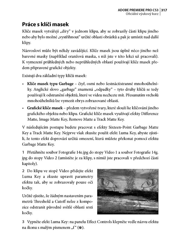 Oficiální výukový kurz je příručkou garantovanou samotnými tvůrci tohoto programu. V 19 lekcích se naučíte vše od natáčení a zachytávání videa přes první střih a práci se zvukem až po vytvoření DVD s autorizací a praktické využití nových funkcí. V jednotlivých lekcích budete vytvářet skutečné projekty, díky nimž své vědomosti a znalosti postupně rozšíříte a zdokonalíte.