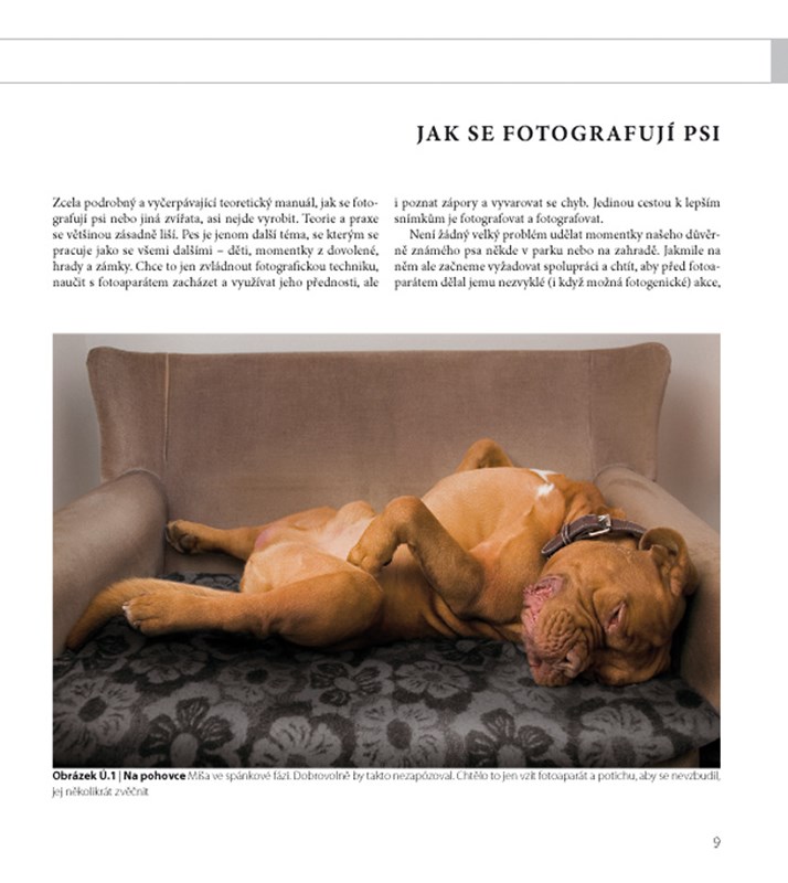 Zkušený fotograf psů vám v této knize ukáže vše, co k úspěšnému zachycení svých psích společníků potřebujete. Praktický výklad pak doplní množstvím příkladů z praxe. Díky svěžímu jazyku a množství skutečných fotografických situací se u čtení této knihy nudit určitě nebudete. Autor se krátce věnuje i fotografování ostatních zvířat – koček, koní, ale i slepic či krav – princip práce zůstává stejný, takže bude tato kniha užitečná i majitelům ostatních domácích mazlíčků. V této knize se naučíte: