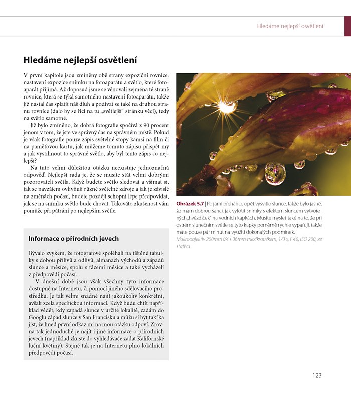 Ať už fotografujete portrét, krajinu či makro, je pro vás mimořádně důležité světlo. Tato kniha vám pomůže skutečně a do hloubky ovládnout expozici a kreativně použít světla ve prospěch výsledné fotografie – pak zjistíte, jaký magický nástroj vám tato kniha dává k dispozici.