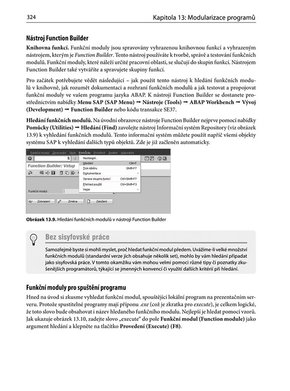 Výklad začíná zcela od základu, od instalace vývojových nástrojů a seznámení s jazykem ABAP. Pokračuje krok za krokem přes všechny oblasti vývoje (práce s databázemi, řídicí struktury) až po komplikovanější činnosti jako využití interních tabulek a modularizace programu.
