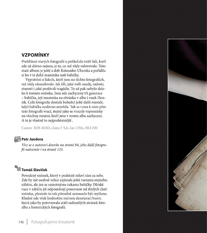 Fotografie jsou doplněny komentářem autorů – dozvíte se, jak a kde fotografie vznikala, kdo ji fotografoval a jakou techniku při tom použil. Samozřejmostí jsou technická data o expozici každého snímku.