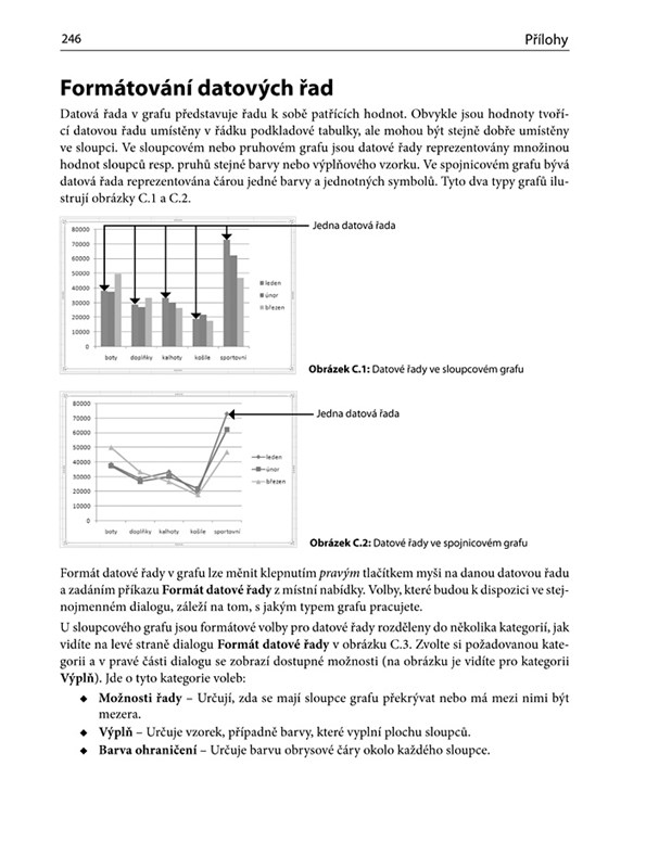 V závěru knihy najdete seznam řešení možných problémů, kurz tvorby grafů v Excelu a přehled rozdílů práce s kontingenčními tabulkami a grafy mezi jednotlivými verzemi Excelu.