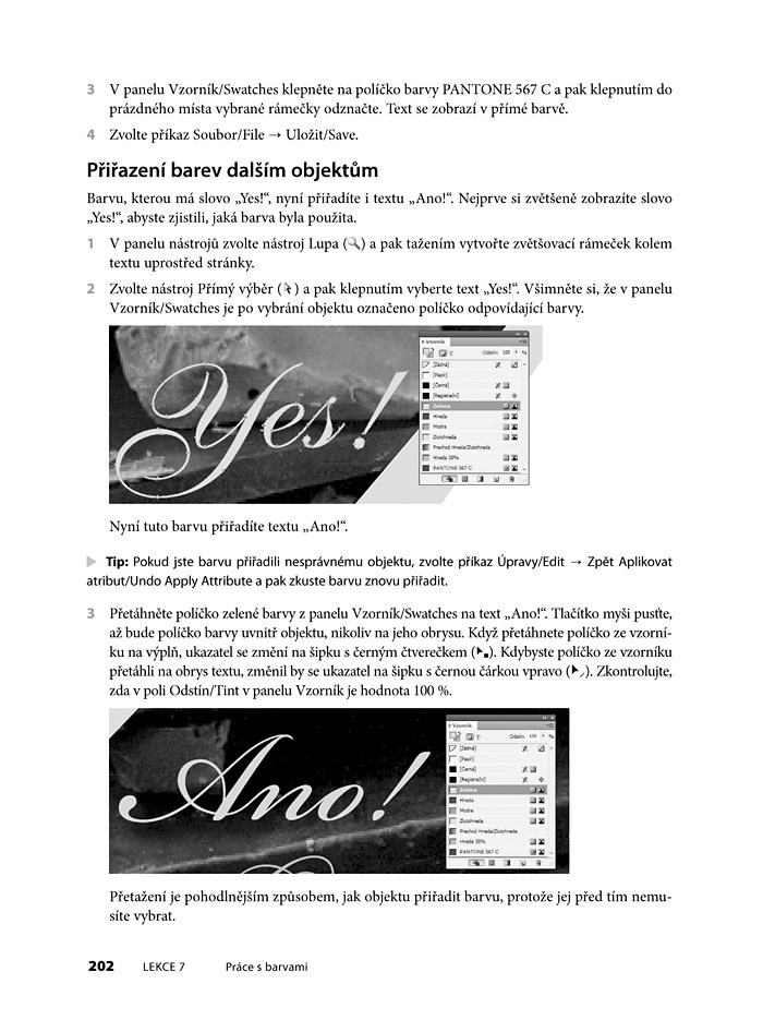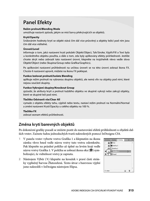 Kniha obsahuje jak české, tak anglické prvky uživatelského rozhraní InDesignu.
