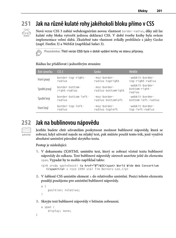 Tvoříte internetové stránky a máte chuť používat nevšední vizuální efekty pomocí CSS? Nechcete se zabývat teorií, naopak se chcete ihned vrhnout do praxe? Nyní máte k dispozici tu pravou knihu – sbírku nejužitečnějších tipů a triků pro CSS.
