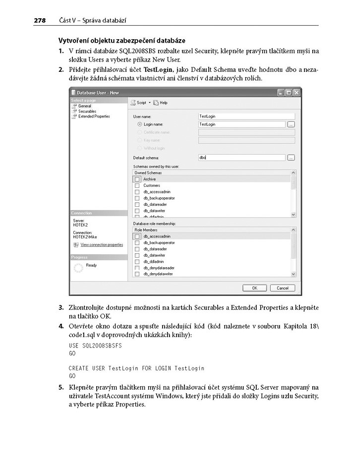 Výbava nejmodernějšího ze současných řídicích databázových systémů, Microsoft SQL Serveru 2008, a základy nezbytné pro fungování databázových aplikací na jeho platformě již díky této knize nebudou zapovězeny ani úplným začátečníkům. Pokud s tímto systémem teprve začínáte nebo přecházíte na novou verzi, nejlépe vám pomůže srozumitelný průvodce, který vám vše trpělivě vysvětlí a krok za krokem předvede.
