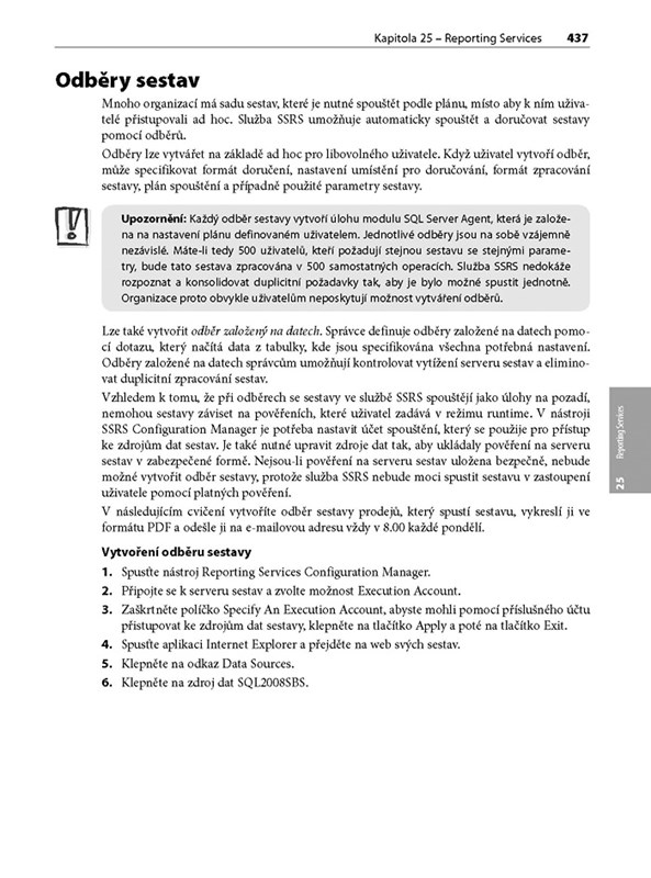 Kniha poskytuje praktické pokyny také pro vývoj databázových řešení, která splňují podnikové požadavky. Dozvíte se, jak integrovat data systému SQL Server do svých aplikací, psát dotazy, vytvářet sestavy a zavádět výkonné systémy Business Intelligence. Své vědomosti a dovednosti budete zdokonalovat postupně na praktických příkladech a bez zbytečné teorie.