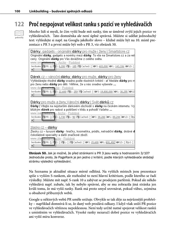 Zkušení odborníci v knize odhalují tajemství, jak dosáhnout úspěchu v propagaci webu na Internetu, a to formou krátkých článků, které konkrétně odpoví na všechny vaše dotazy nejen ohledně SEO. Sbírka těch nejlepších postupů optimalizace a propagace webů vám pomůže, kdykoliv si nebudete vědět rady, a zároveň vás seznámí s důmyslnými postupy profesionálů.