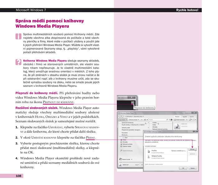 Nejdůležitější činnosti probírané v knize si můžete navíc vyzkoušet v interaktivních videokurzech na doprovodném CD. Ilustrovaná postavička vám dává přesné instrukce, čeká na vaše kroky a v případě neúspěchu vám je sama předvede. Díky videokurzu ani nemusíte mít Windows 7 na svém počítači nainstalovaný, navíc nemůžete nic zkazit.