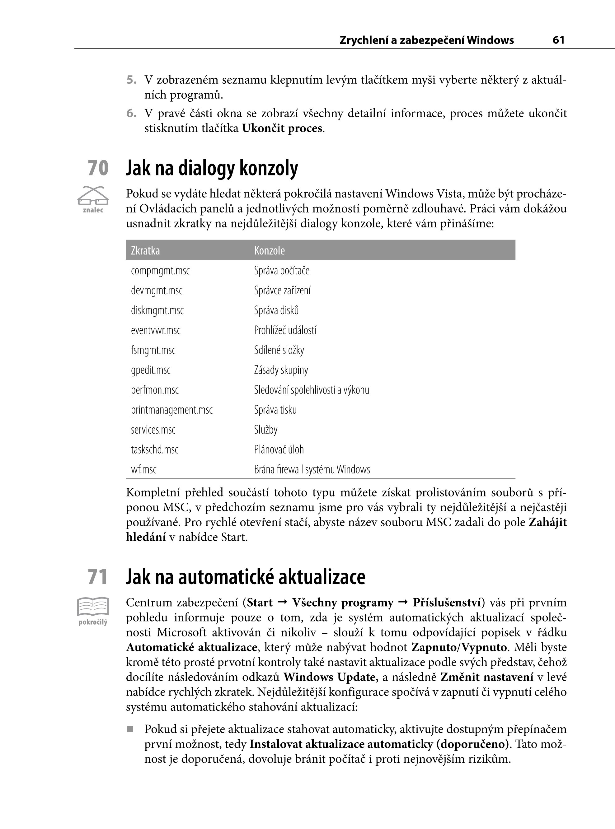 Sbírka těch nejlepších návodů, tipů a rad pro každodenní práci s počítačem a internetem bude vítaným pomocníkem nejen začínajícímu, ale též pokročilejšímu uživateli. A to bez ohledu na to, zda používáte stolní, či přenosný počítač. Kniha obsahuje na sobě nezávislé články s návody krok za krokem, díky nimž budete mít vždy po ruce návody pro všechny každodenní činnosti, které s počítačem a internetem provádíte.