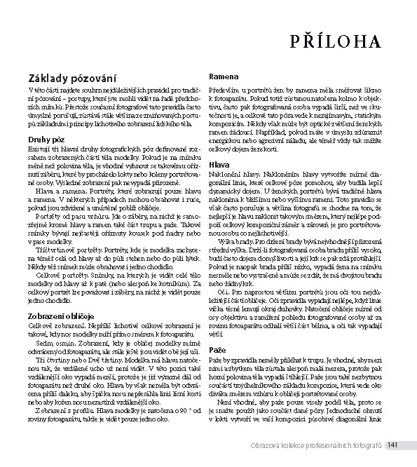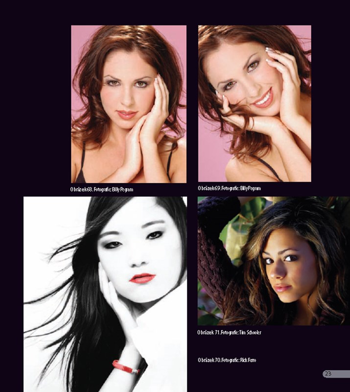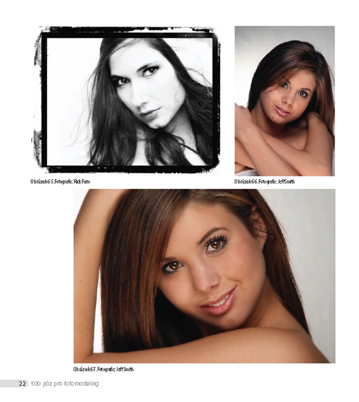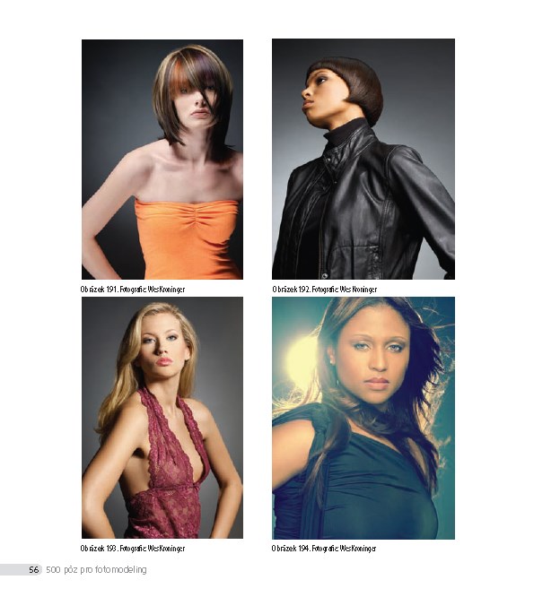 Množství snímků od uznávaných módních, portrétních a komerčních fotografů vám poskytne dostatečný zdroj nápadů pro vaši práci s modelkou. Během fotografování pak můžete kdykoli jednoduše vybrat druh pózy, kterou byste rádi použili, prohlédnete si několik konkrétních příkladů její realizace a už bude jen na vás, zda se necháte inspirovat, nebo se pokusíte přijít s něčím novým.