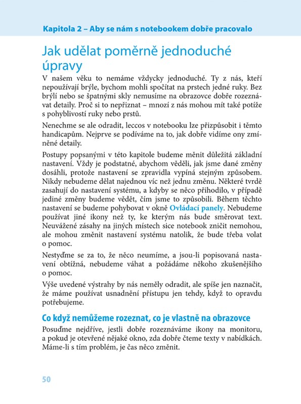 Srozumitelný výklad je přizpůsoben potřebám seniorů, nevynechává žádný důležitý krok, vyhýbá se zdlouhavým i náhlým skokům, látku odměřuje v přiměřených dávkách, aby se čtenář neztratil v záplavě novinek. Kniha vás mimo jiné naučí: