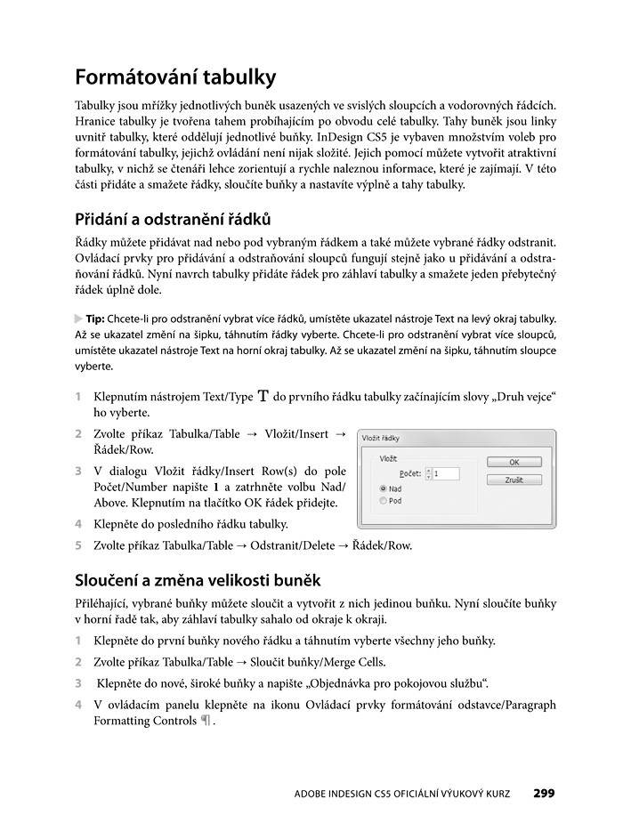 Kniha obsahuje jak české, tak anglické prvky uživatelského rozhraní InDesignu.