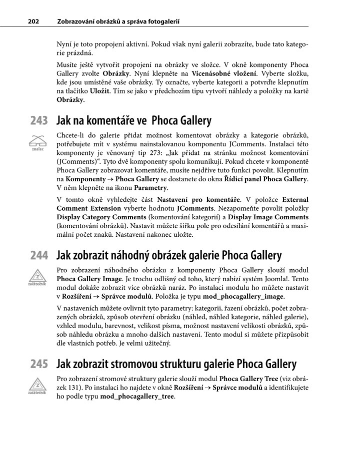 Publikace formou krátkých a stručných článků nabízí sbírku těch nejužitečnějších postupů pro tvorbu a správu webů v systému Joomla!. Kdykoli si nevíte rady, potřebujete inspiraci či pomoc s řešením zapeklitého problému, stačí nalistovat příslušnou stranu. Kniha z edice 333 tipů a triků odpoví na všechny vaše otázky, seznámí vás s důmyslnými postupy profesionálů a ukáže vám, jak vaše představy okamžitě použít v praxi. Autor v knize představí mimo jiné: