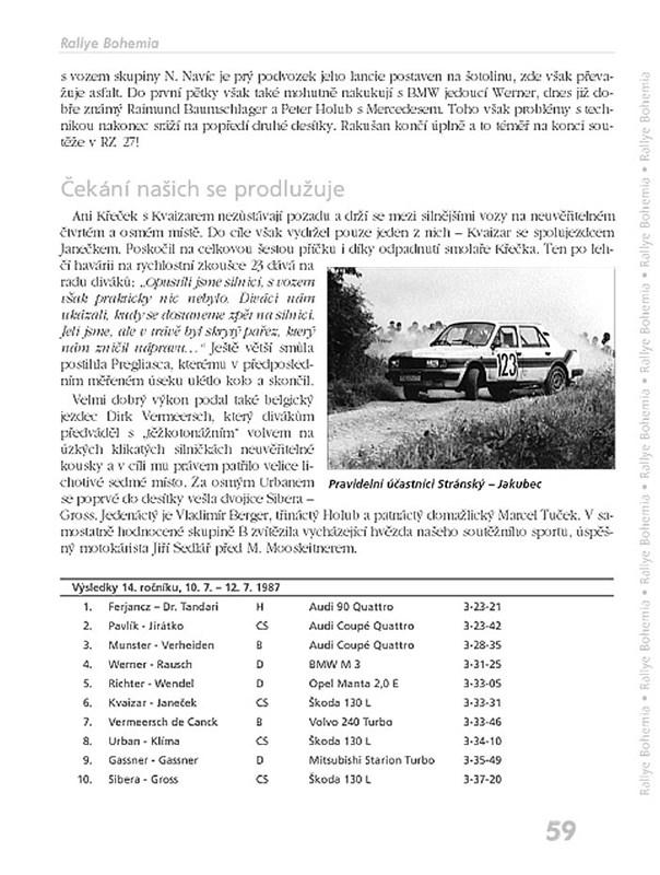 Kniha popisuje historii jedné z nejslavnějších rallye soutěží v České republice, Rallye Bohemia. Mimo podrobných výsledků ze všech ročníků soutěže včetně dosažených bodů naleznete v této encyklopedii i životopisy slavných jezdců a jejich mechaniků, podrobné informace o průběhu jednotlivých ročníků soutěže, technické informace o vozidlech a především desítky černobílých i barevných akčních fotografií, z nichž některé nebyly dosud nikdy publikované. Kniha je tedy určena nejen pro všechny pamětníky, ale i motoristické fandy a návštěvníky rallye závodů.