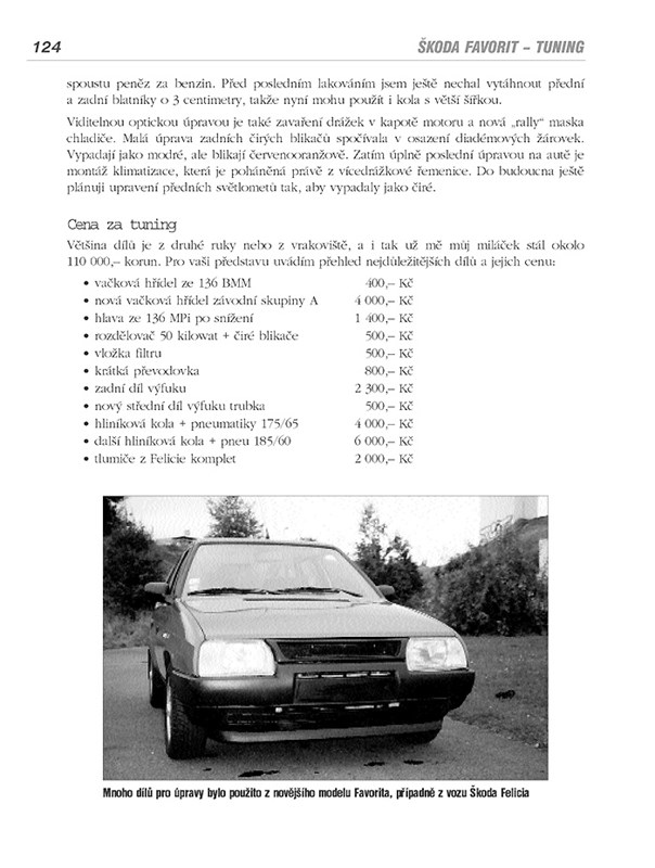 Chcete vyjádřit vaši osobnost a podstatně změnit vzhled vašeho automobilu Škoda Favorit? Přejete si odlišit váš vůz od statisíců dalších naprosto stejných vozidel? Pak právě vám je určena tato praktická kniha. Zkušený tuner a několik profesionálních tuningových firem vám na několika stech fotografií a nákresů ukáží, jak na to.