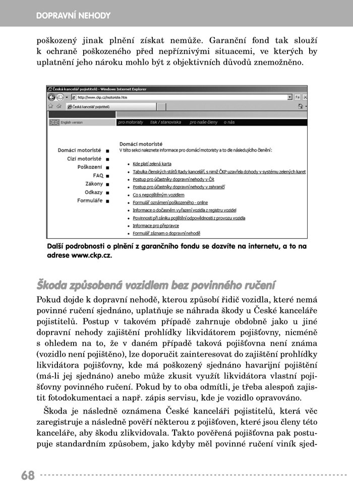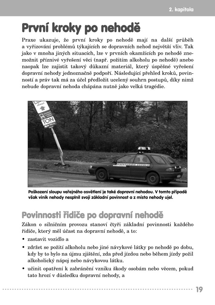 Tato praktická příručka vám ukáže, jak se lze vyhnout dopravní nehodě, popř. jak eliminovat následky nehody na nejnižší možnou míru. Pomůže vám také vyřešit situaci přímo na místě dopravní nehody, ukáže vám jak zaznamenat všechny potřebné údaje a svědectví. Mnoho rad oceníte i později - při dokazování míry zavinění a jednání s pojišťovnou za účelem náhrady vzniklé škody.