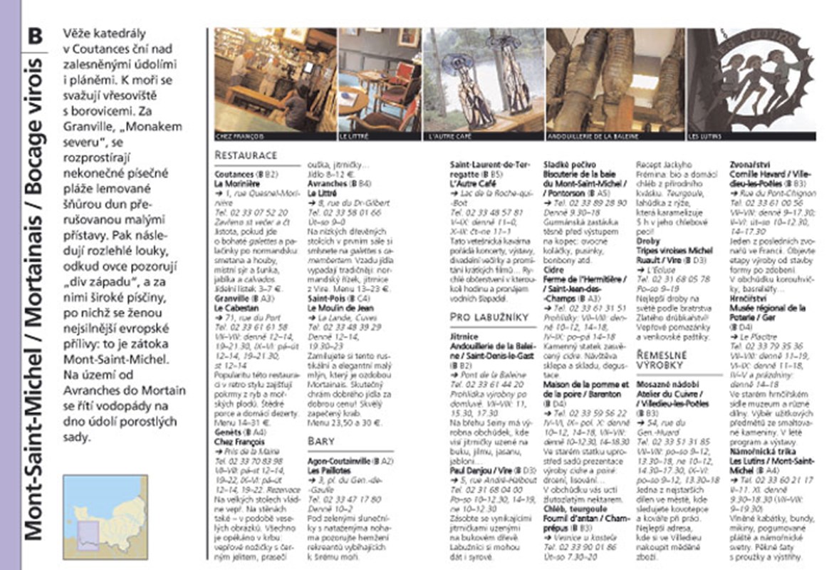 Objevujte region s mapou v ruce! Pro všechny chutě a každý rozpočet: výběr 80 neopominutelných míst, nabídka 200 adres skvělých restaurací, statků s ubytováním, pekařství, obchodů, místních výrobců, tržišť, řemeslníků, hotelů… A všechny praktické klíče, mapy a dobré rady, abyste si Normandii užili co nejvíce!