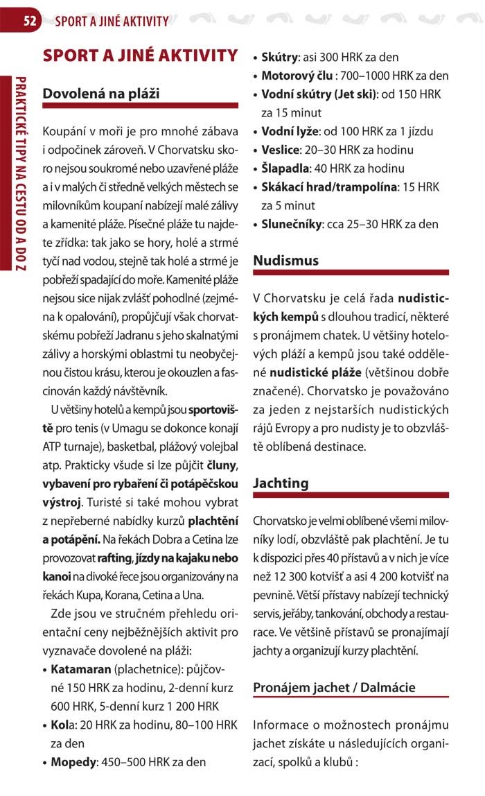 - Tipy pro aktivní dovolenou: turistika, cyklistika, vodní sporty atd.