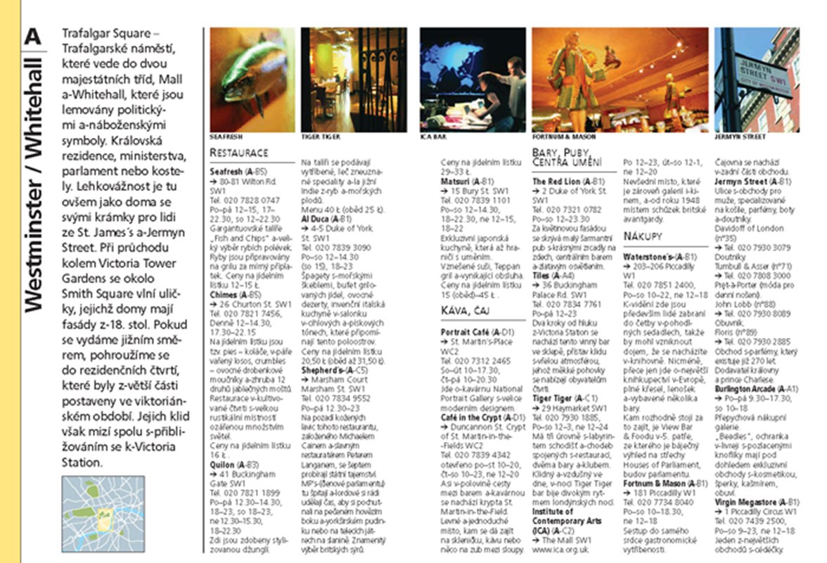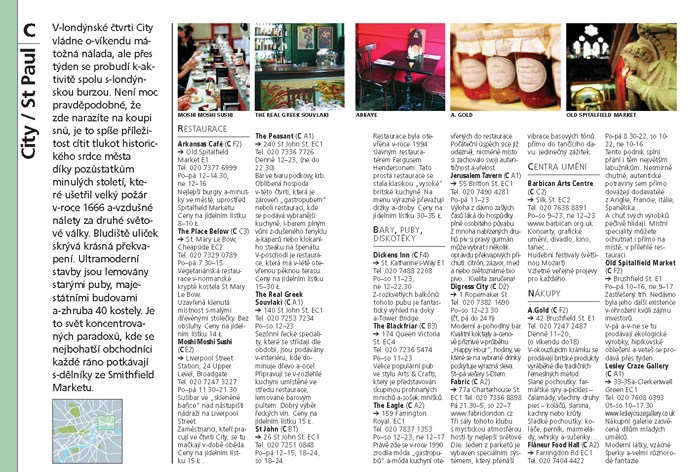 Čtenář a cestovatel zde najde informace nejen o historii a památkách, ale i k zábavě, nákupům či stravování, jakož i praktické rady o dopravě, otevíracích dobách, cenách a spoustu dalších užitečných tipů. Podrobný plánek města nalezne na jednoduchých rozkládacích mapách zobrazujících jednotlivé čtvrti a části města.