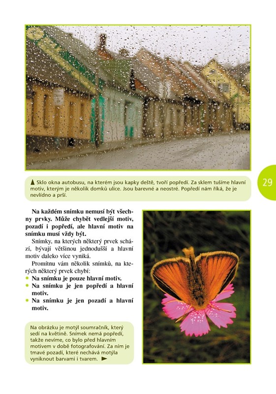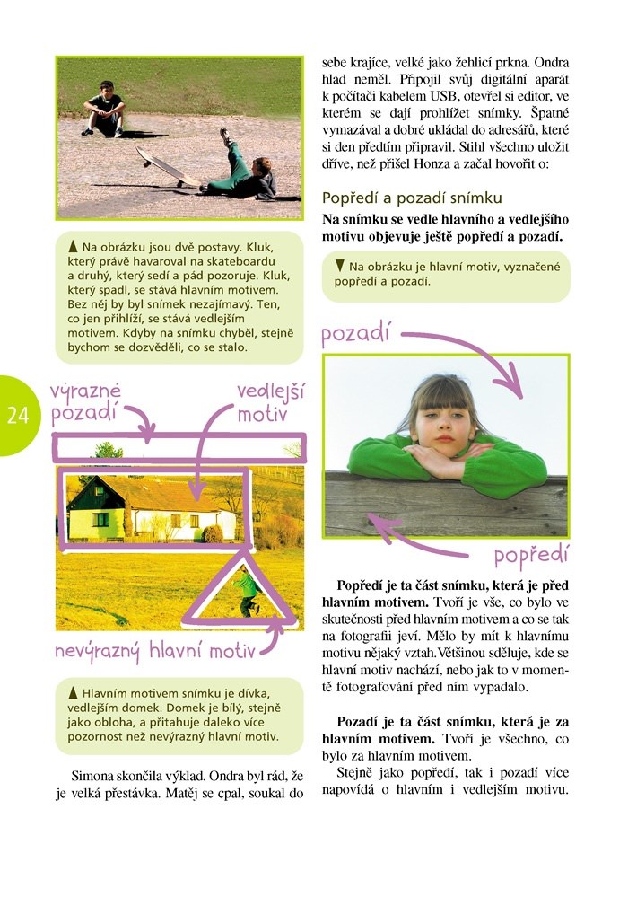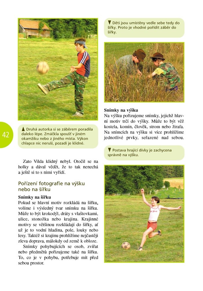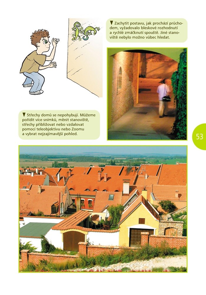 Laskavě napsaný průvodce pro děti, který kombinuje příběhy z letního tábora pro dětské zájemce o fotografování s výukovými lekcemi. Text je přehledný, bohatě ilustrovaný a umožňuje i rychlé tematické vyhledávání, pokud vaši ratolest zajímá jen určité téma a nechce znovu procházet vše. Děti poznají nejen základní pravidla kompozice snímku (zlatý řez), ale naučí se také objevovat kolem sebe zajímavé hry tvarů, barev a dějů, díky kterým jejich fotografie získají osobité kouzlo. Kniha není orientována jen na digitální fotografii, ale i na klasickou, takže přijde vhod všem začínajícím fotografům.