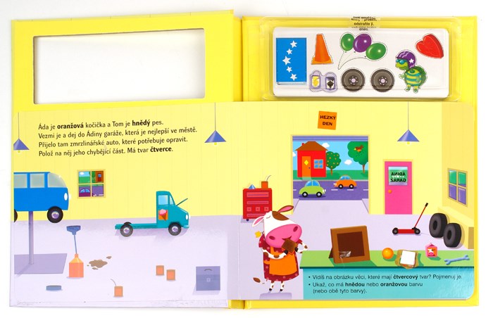 Tato magnetická kniha pomůže vašim dětem poutavým způsobem si procvičit rozeznávání tvarů a barev. Propojení příběhu, ilustrací, magnetek s úkoly nabízí dětem kreativní způsob učení. Rodiče mohou nahlas číst příběh obsahující názvy barev a tvarů, které si děti mají možnost ihned procvičit. Budou plnit různé úkoly a připevňovat magnetky do zajímavě ilustrovaných barevných scén.