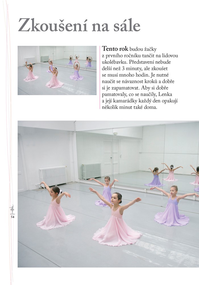 Hodina baletu začíná za chvíli. Tanečnice si před velkými zrcadly upravují cvičky… Chceš být jako ony? Pak je tato knížka právě pro tebe, protože díky ní se otvírají dveře do sálu, v němž se odehrává opravdová lekce klasického tance. Vyzkoušíš si první taneční krůčky, setkáš se s profesionální baletkou, zažiješ generální zkoušku a slavnostní představení na konci roku pod světly refl ektorů!