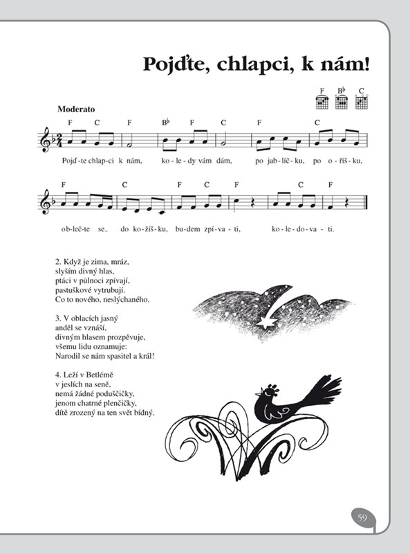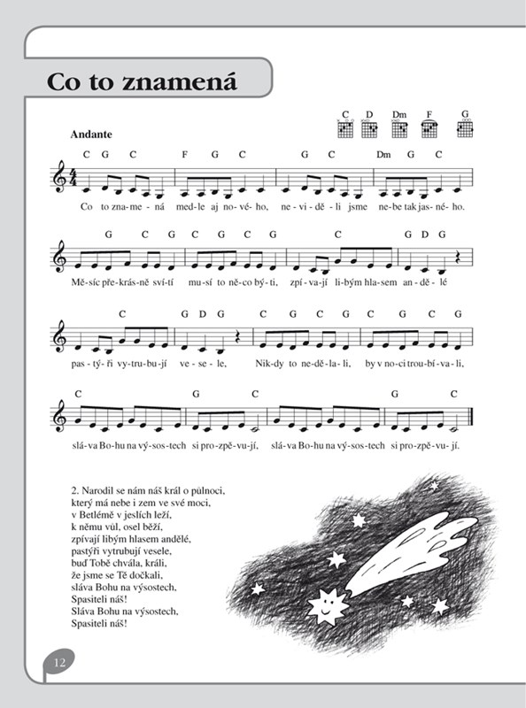 Zpěvník obsahuje výběr nejznámějších českých koled, ale i koledy anglické. Každá z nich je uvedena ve dvou tóninách – tak aby vyhovovala hlasovému rozsahu dětí i aby šla snadno zahrát na klavír, flétnu, housle či kytaru. Součástí not jsou písmeny vypsané akordy i kytarové akordové značky.