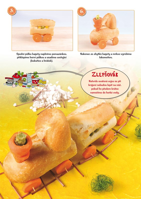 Recepty, které v knize naleznete, zahrnují jak pokrmy SLANÉ (chlebíčky, jednohubky, saláty, obložené mísy apod.), tak i SLADKOSTI (cukroví, poháry, zákusky apod.) a NÁPOJE (koktejly apod.). Provedení těchto známých pochutin vás však zaručeně překvapí! Už jste někdy jedli toasty ve tvaru indiánského týpí, pochutnávali si na sladkých polárních liškách nebo pili koktejl určený pro opravdové americké filmové hvězdy?