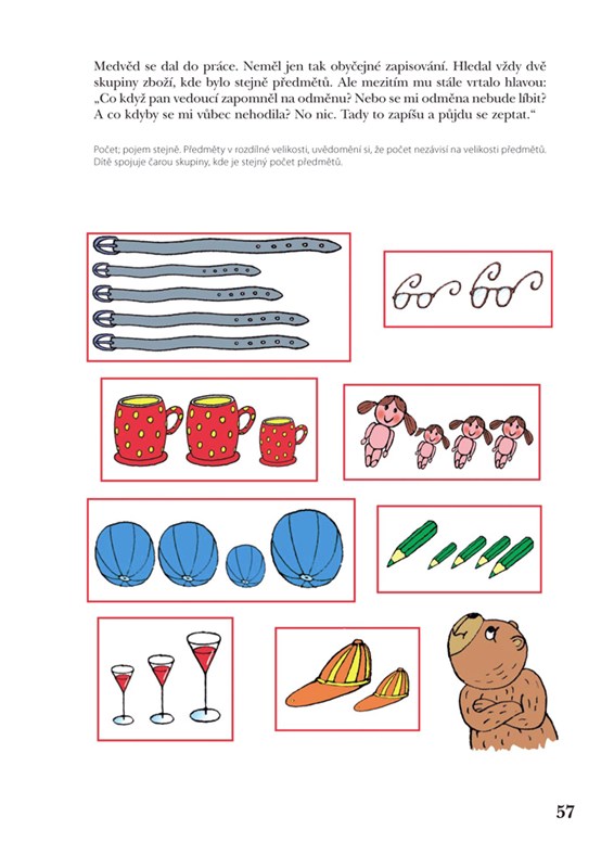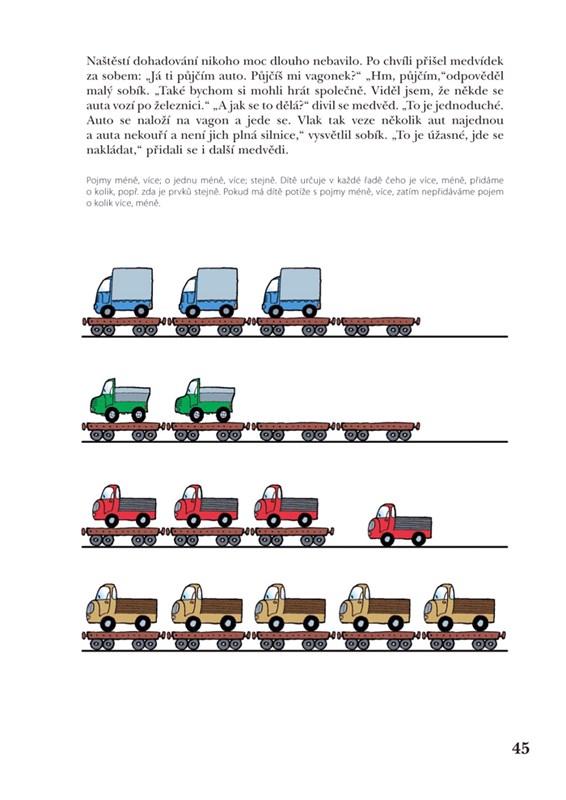 Záměrem publikace je i rozvíjet u dětí schopnost pohybovat se v oboru do pěti. Nemusí dosud znát čísla. Pracuje se pouze s množstvím prvků, které číslo obsahuje. Jde opět o to, aby byly u dítěte rozvinuty předpoklady pro matematické operace, které bude provádět v budoucnosti.