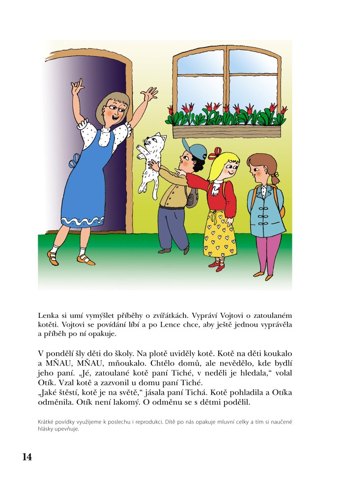 - 2) krátké povídky se zvýšenou frekvencí dané hlásky (lze je využít pro upevňování nově vyvozených hlásek a k napodobování modulačních faktorů řeči: rytmu, tempa, dynamiky)