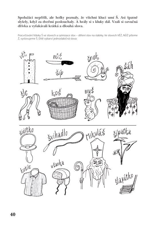 - 1) soubor her a obrázků k procvičení hlásky – dělení slov na slabiky, skládání slov, tvoření slov odvozováním, rýmování, tvoření zdrobnělin, opačný význam slov... (slouží k obohacování slovní zásoby, cvičení paměti, rozvíjení fonematického sluchu, usnadňuje počáteční čtení)