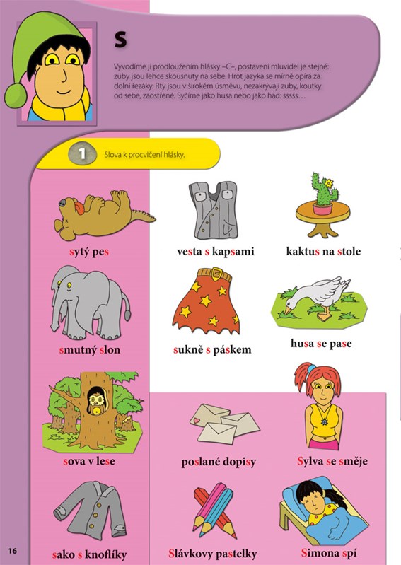Tato kniha je určena především dětem předškolního věku a prvňáčkům. Mohou ji využívat nejen rodiče, ale také učitelé v mateřských a základních školách a speciální pedagogové. První část knihy obsahuje návody k procvičování hlásek, které činí dětem největší potíže (Ď, Ť, Ň, L, C, S, Z, Č, Š, Ž, R, Ř). Pomocí veselých obrázků, krátkých příběhů a nových říkanek si děti upevní správnou výslovnost a zlepší vyjadřovací schopnosti.
