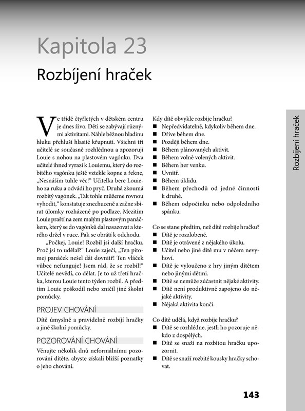 Kniha předkláda řešení pro více než 40 druh konkrétního problémového chování: