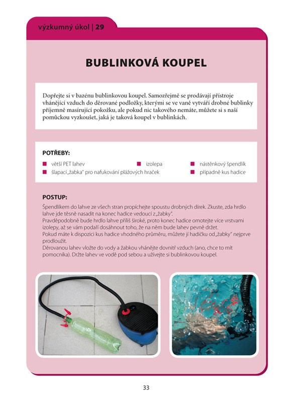 Autor ve své knize mladým čtenářům nabízí návody na mnoho zajímavých experimentů a zábavných vynálezů pro horké letní dny, a to zejména s využitím PET lahví. Čtenář se tak může nejen podivovat a přemýšlet nad rozmanitým chováním vody, jejího vlnění nebo způsobů ohřevu, ale může si také vyzkoušet konstrukci pomůcek a zařízení pro různé letní hrátky. Experimenty zahrnují živou i neživou přírodu a všechny jsou proveditelné s pomocí snadno dostupného vybavení, které lze najít v každé domácnosti. Děti se zabaví na dlouhé hodiny a ještě se mnohému přiučí.