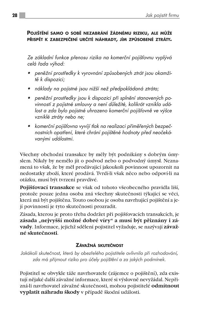 Publikace s názvem „Jak pojistit firmu“ si klade za cíl přehlednou formou přiblížit čtenářům, a to jak podnikatelům, tak široké veřejnosti, jak se dají pojistit rizika podnikatelských subjektů.