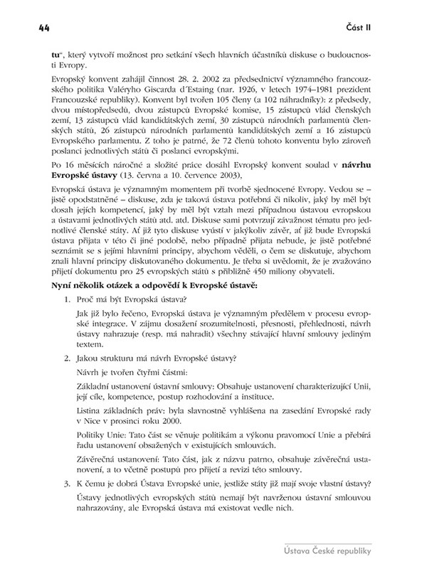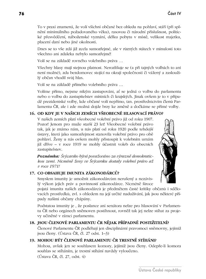 V kapitole Ústava ČR v otázkách a odpovědích naleznete 163 otázek s odpověďmi, věnujících se všem důležitým oblastem a problémům souvisejících s Ústavou ČR. Čtivou, živou formou si osvojíte vše důležité, co byste měli vědět.