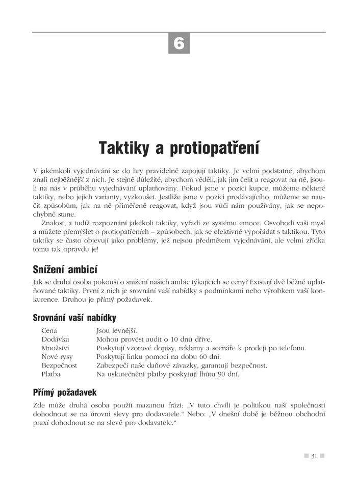 - jaké zvolit při vyjednávání taktiky a protiopatření,