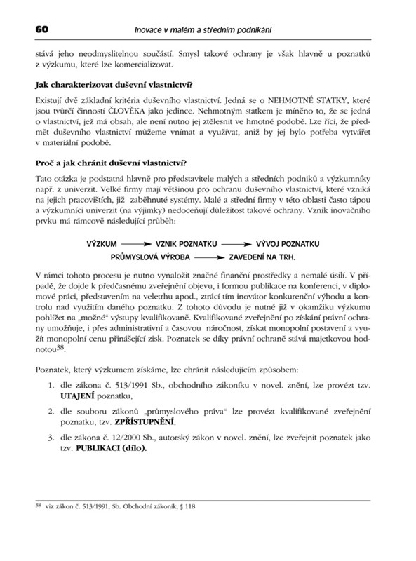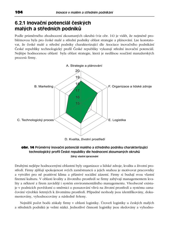 Publikace je věnována problematice inovací v malém a středním podnikání v České republice v posledních letech. Autoři se zabývají širokým okruhem otázek a problémů spojených zejména s vymezením malých a středních podniků podle různých kritérií, s jejich podporou v programech Evropské unie po vstupu ČR, se zapojením do Rámcových programů EU. Po teoretické i praktické stránce jsou rozebírány pojmy jako inovace, konkurenceschopnost, konkurenceschopná strategie, inovační proces a potenciál. Velmi zajímavá a přínosná je pasáž o klastrech a klastrových iniciativách v České republice. Publikace je doplněna případovými studiemi z českých podniků, informacemi o možnostech čerpání vládních a mezinárodních podpor podnikání, praktickými postupy při využívání programů výzkumných a inovačních aktivit v běžném životě malých a středních podniků.