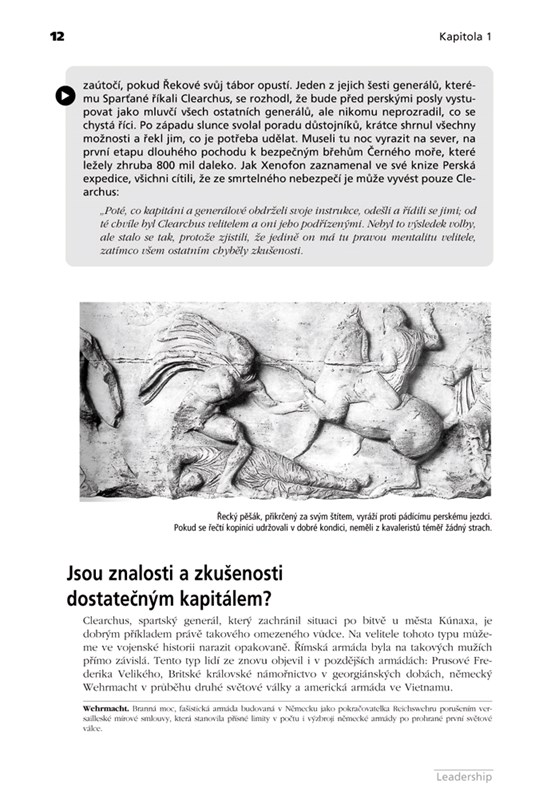 Kdokoliv z nás, kdo usiluje o vedoucí postavení a cítí potřebu nějaké formy vůdcovství, může svoji výkonnost studiem minulosti jen zdokonalit. V této podnětné a prospěšné knize John Adair pokládá otázky na téma, kdo byli významní vůdci naší historie a co se od nich můžeme o podstatě a praktikování vůdcovství naučit v dnešní době.