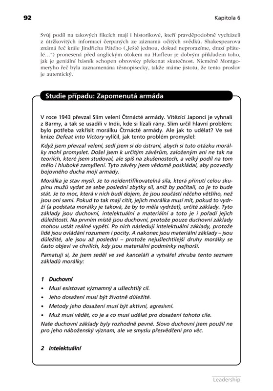 Tato kniha nutí k zamyšlení, je bohatá na příklady a má velmi široký úhel pohledu: klíčové vlastnosti, které často chápeme jako abstraktní pojmy – motivace, komunikace, schopnost rozhodovat, inspirace – zde téměř doslova ožívají.