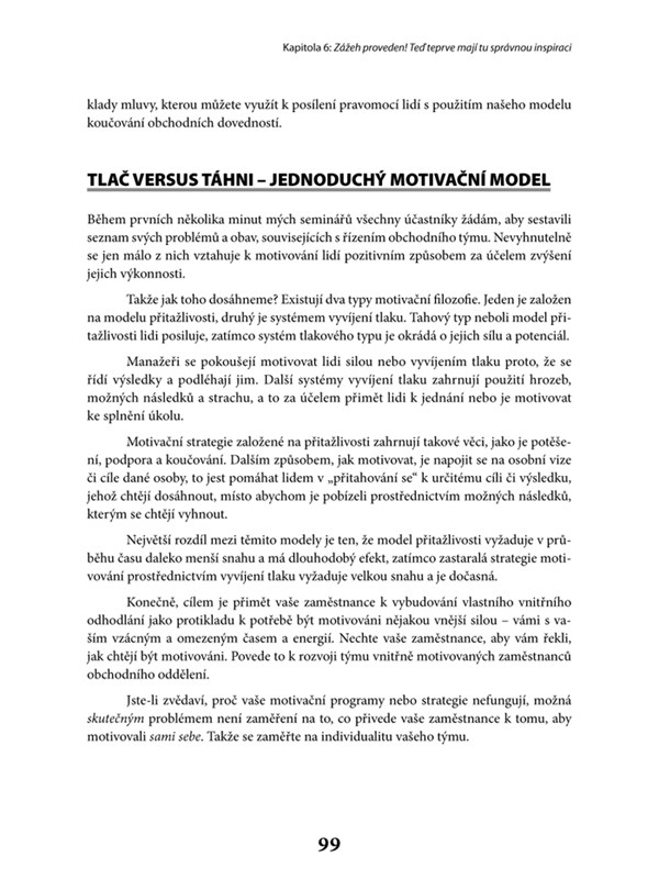 - prostřednictvím umění získat si druhé koučovat své prodejce tak, aby dokázali motivovat sami sebe