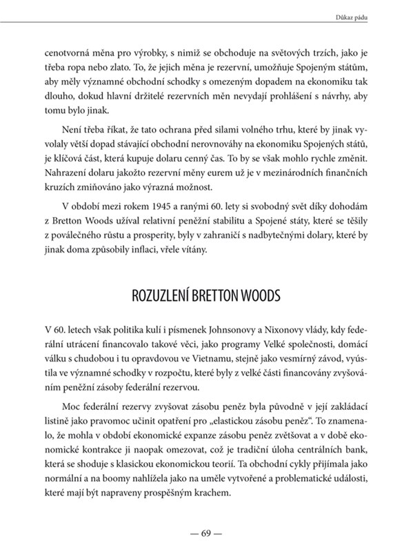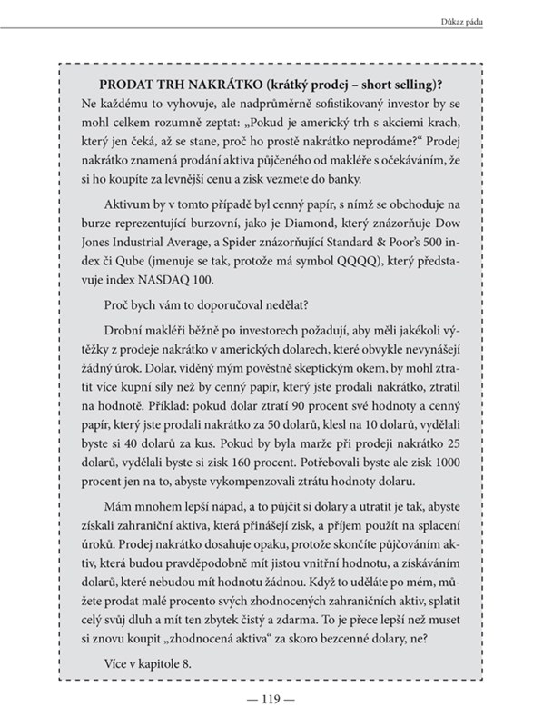 Spolu s autory můžete přemýšlet také o možném řešení. To celkové, na národních úrovních, závisí především na vládě, a prý bude bolestivé. Vy se tomu ale můžete alespoň částečně vyhnout a zároveň prosperovat i v této nepříznivé době – stačí nechat se inspirovat druhou částí knihy, která obsahuje základní rady, jak nakládat se svými financemi, kde a do čeho investovat.