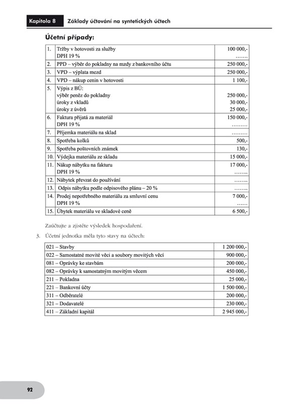 - jak účtovat finanční a dlouhodobý majetek, zásoby, mzdy, daně atd.