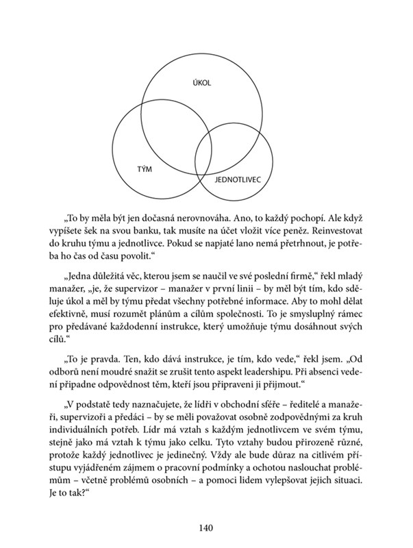 „Jedna z mála knih o vedení lidí, neboli leadershipu, která může být nazývána opravdovou klasikou. Tato průlomová práce Johna Adaira změnila naše chápání toho, jak leadership funguje a jak se z vedoucích pracovníků mohou stát opravdoví lídři.“