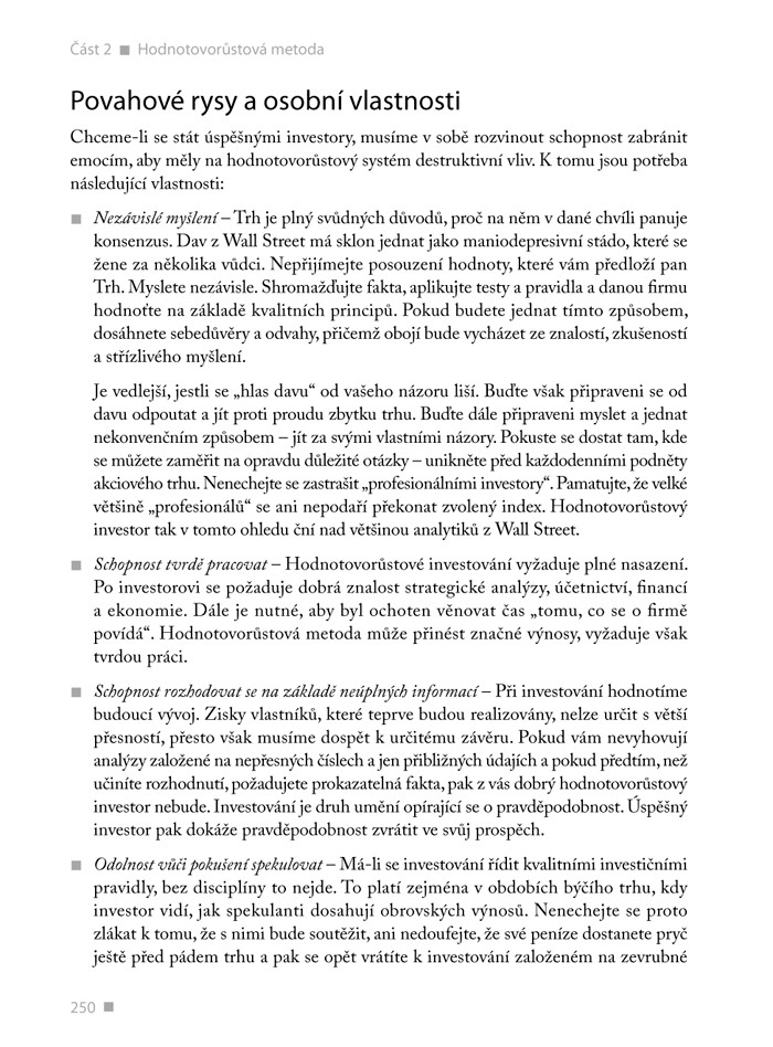 „Tuto knihu by si měl přečíst každý, kdo to s investováním myslí skutečně vážně. Zvláště v dnešní době, charakteristické záplavou informačních zdrojů a různých oceňovacích technik, je pochopení základů hodnotového investování nezbytným předpokladem úspěšného dlouhodobého investora. A od koho jiného čerpat než od nejúspěšnějších hodnotových investorů historie finančních trhů.“