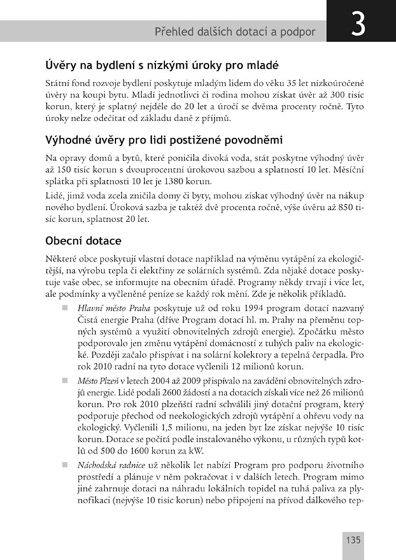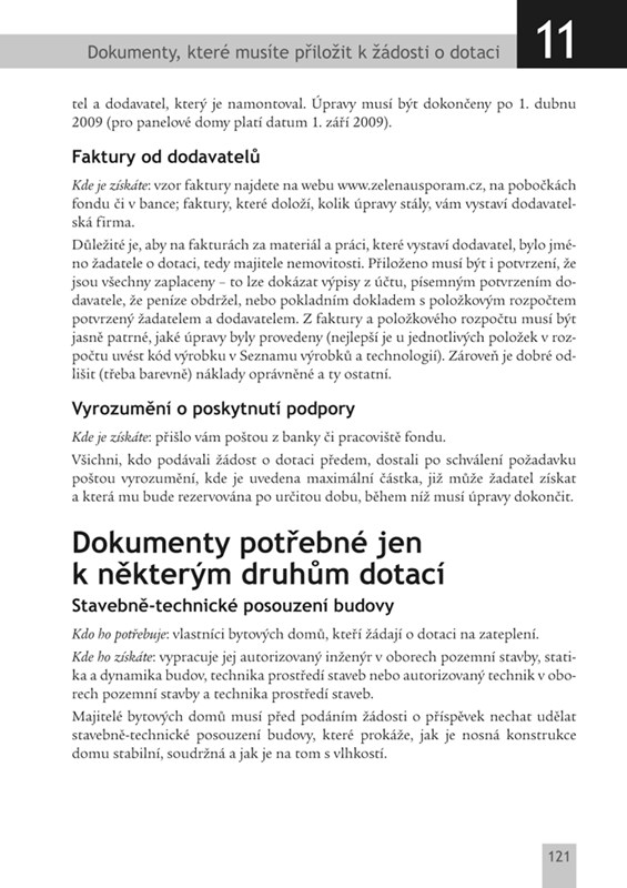 Manuál pro lidi, kteří chtějí mít energeticky úspornější domácnost a současně získat dotaci v programu Zelená úsporám. Tomu odpovídá i dělení knihy na dvě hlavní části - tipy na to, jak udělat domácnost úspornou (zateplení, výměna oken, ekologické topení…) a jak na to dostat dotaci v programu Zelená úsporám. Autoři jsou redaktoři MF Dnes Alice Kupčeková a Filip Grygera, kteří se věnují převážně psaní o energetických úsporách, úsporném stavění a dotacích.
