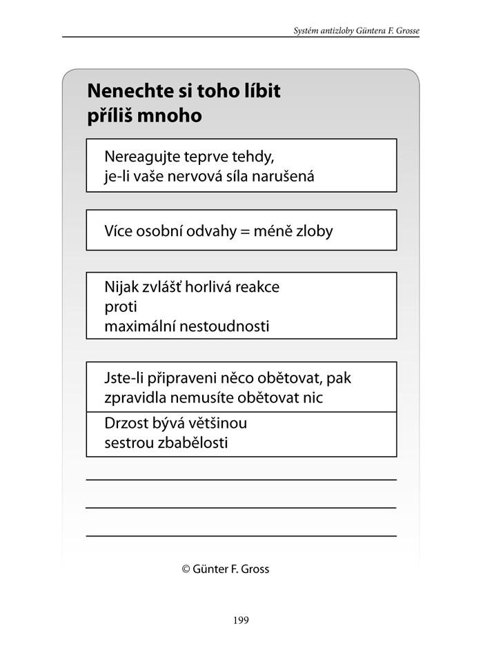 Tato kniha vám ukáže, jakým způsobem můžete vést šťastný soukromý život. Řekne vám, co patří ke spokojenému partnerskému vztahu a jak se chovat po profesní stránce, aby kariéra vaší osobní svobodě a kvalitě života sloužila, místo aby ji zatěžovala a ohrožovala. Günter F. Gross, klasik mezi autory v oblasti poradenství, nabízí ve své knize množstvírad, moudrostí a tipů pro dosažení vyšší kvality života v práci i v soukromí. Tisíce nadšených čtenářů s pomocí této knihy získaly více úspěchu, svobody a radosti ze života.